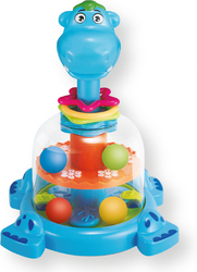 Pestrofarebný mechanický kolotoč v tvare dinosaura je naplnený farebnými guličkami, ktoré budú po stlačení hlavy rotovať, skákať a vydávať hrkajúci zvuk. Táto hračka zaujme a pobaví aj tie najmenšie deti.