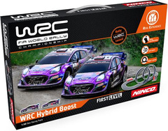 Charakteristika: Elektrická autodráha pre deti i dospelých v mierke 1:50 - WRC Hybrid Boost. Ideálna prvá autodráha s menšími rozmermi. Dĺžka trate 3,2m, 2 autá rally, dvojitý looping. Prevádzka na ceruzkové batérie (8 ks AA - batérie nie sú obsahom balenia) . Ovládače sú prispôsobené detskej ergonómii, majú funkciu TURBO a obmedzenie výkonu. Dráhová autíčka Ford Puma Rally Hybrid. Rozmery autodráhy 94 x 60 cm. V balení WRC Hybrid Boos je všetko na pretekanie (stačí doplniť batérie), menšie rozmery dráhy uľahčujú jej inštaláciu v detskej izbe. Mladých jazdcov prenesú do atmosféry rally pretekov WRC. Prejdite zákruty a naberte rýchlosť na prekonanie zábavného loopingu. Dráhová autíčka sú navyše vybavené LED osvetlením! Analógová autodráha Auto dráha pracuje na osvedčenom a spoľahlivom analógovom systéme. To znamená, že rýchlosť autíčok udáva napätie v koľajniciach, ktoré sa menia stlačením ovládačov. Ovládač s turbom Kvalitný ergonomický ovládač okamžite padne do ruky. Každý ovládač je vybavený proporcionálnym tlačidlom na ovládanie plynu a tlačidlom TURBO , ktoré krátkodobo zvýši rýchlosť príslušného autíčka. Jednoduché pripojenie ovládača pomocou konektora Jack. Obmedzenie výkonu Na spodnej strane ovládača je plastová skrutka, ktorou je možné mechanicky obmedziť doraz páčky plynu a tým nastaviť maximálnu rýchlosť pre autíčko. To je vhodné pre menšie deti, aby autíčka nevylietavali z dráhy. Obrázkový návod Ku všetkým autodráhám WRC je dodávaný obrázkový návod, v ktorom nájdete varianty zostavenia trate, zapojenie autodráhy, popis jednotlivých funkcií a spôsob údržby. Všetko je jednoduché a prehľadné tak, aby autodráhu zostavilo dieťa. Dvojitý looping Trať obsahuje zábavný dvojitý looping, ktorý si deti zamilujú. Pred začiatkom loopingu je nutné na ovládači stlačiť Turbo, aby autíčko bezpečne prešlo hlavou dole. Autíčka Ford Kvalitne spracované autíčka s jednosmerným motorom, sú devízou celej autodráhy. Množstvo detailov a nafarbenie karosérie je na veľmi vysokej úrovni. Funkčné svetlomety Zažite neopakovateľnú atmosféru večerných pretekov. Každé autíčko je vybavené vysoko svietivými LED svetlometmi, ktoré osvietia trať a dodajú na autentickosti. Balenie obsahuje autíčka s prepracovanými detailmi, bezdrôtové ovládače s tlačidlom Turbo, diely na stavbu trate a looping. Vlastnosti 2x autíčko Ford Puma Rally Hybrid so svetlami 2x ručné ovládače s funkciou Turbo Možnosť nastavenia max. výkonu na vysielači Dvojitý looping Mierka 1:50 Dĺžka trate je 3,2 metra Rozmery 94 x 60 cm