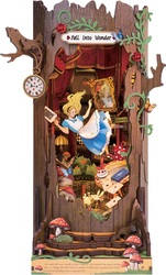 Vitajte v ríši divov! Postavte si vlastný kúsok rozprávkového sveta a nechajte sa uniesť do ríše fantázie. Táto zarážka na knihy je jedinečná dekorácia, ktorá premení každú knižnicu na magické miesto. Je ideálny pre chvíle odpočinku, sústredenia aj kreatívneho tvorenia. Predná časť pripomína mohutný kmeň stromu so stupňovitými vetvami a tajomným otvorom v tvare kľúčovej dierky. Vnútri sa ukrýva svet plný prekvapení. Nechýbajú detailné dekorácie, staré knihy, hry, červené muchotrávky a dokonca ilúzie nekonečného zrkadla. Stlačte dotykový spínač v muchotrávke a ríša divov sa jemne osvetlí príjemným teplým svetlom. Celú scénu dopĺňa citát: „Predstavivosť je zbraňou v boji proti realite.“  3D skladačka je skvelý spôsob, ako si užiť kreatívne a edukatívne hranie a zároveň vytvoriť nádherný model, ktorý sa môže stať netradičným darčekom či ozdobou interiéru. Skladanie podporuje rozvoj jemnej motoriky, priestorového myslenia a trpezlivosti. Je to možnosť, ako kombinovať zábavu so vzdelávaním. Všetky presne vyrezané dieliky do seba ľahko zapadnú bez použitia lepidla či nástrojov, aby výsledok bol stabilný a odolný. Skladačka je dodávaná v nezloženom stave, zabalená v škatuli s podrobným návodom na zostavenie. Na napájanie slúži USB-C kábel (nie je súčasťou balenia).  Hlavné vlastnosti: 300 dielikov doba skladania 5 hodín vysoká obtiažnosť zostavenia LED osvetlenie zostavenie bez použitia lepidla a nástrojov výnimočný vzhľad vhodné pre deti i dospelých rozvíja logické a motorické zručnosti podporuje trpezlivosť detí ideálny darček alebo jedinečná dekorácia napájanie pomocou USB-C kábla (nie je súčasťou balenia)