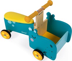 Drevené odrážadlo pre najmenších Hroch Janod s vozíkom na hračky. Táto krásna a trendová hračka v tvare hrocha je ideálna pre rozvoj motorických schopností a rovnováhy vášho dieťaťa.