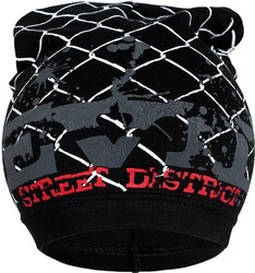 Čiapočku zdobí nápis Evil street district. Čiapočka je ušitá z priedušného materiálu, preto je vhodná pre jarné i jesenné dni. Materiál je pružný.