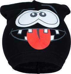 Čiapočku zdobí obrázok veselé tváre. Čiapočka je ušitá z priedušného materiálu, preto je vhodná pre jarné i jesenné dni. Materiál je pružný.
