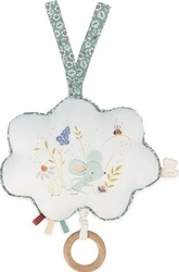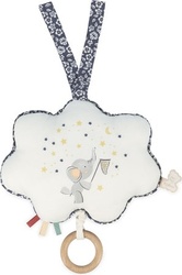 Látkový hudobný obláčik je jemne potlačený a vyšívaný vzorom sloníka a hviezdičiek, vankúšik je kľúčovým prvkom pre vývoj bábätka.