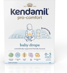 Kvapky Kendamil pro-comfort obsahujú tri bakteriálne kmene pre doplnenie bifidobaktérií a laktobacilov, ktoré sa nachádzajú v črevnom mikrobióme. Navyše obsahujú tiež fruktooligosacharidy (FOS), ktorými sa tieto prospešné baktérie živia.