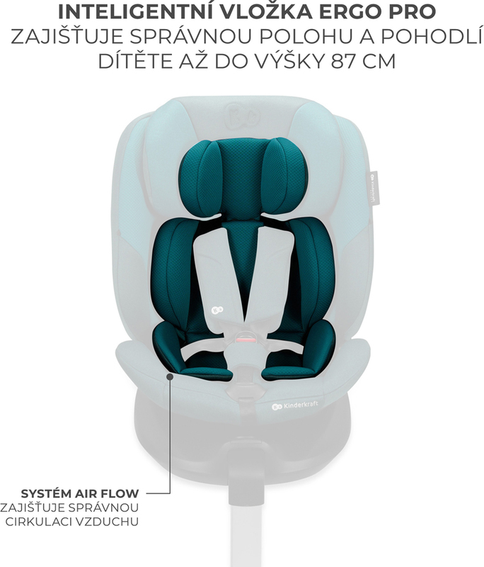 Autosedačku má vložku ERGO PAD PRO s rozšíreným rozsahom použitia (do výšky 87 cm). Podporuje zaujatie správnej anatomickej polohy tela dieťaťa počas jazdy. Vložka má systém AIR FLOW, ktorý zabezpečuje dostatočnú cirkuláciu vzduchu počas horúceho počasia.
