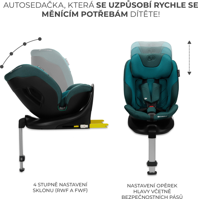 Opierku hlavy môžete nastaviť až do jednej z 12 úrovní. Okrem toho je autosedačka vybavená systémom RECLINING SYSTEM, čo znamená, že môžete meniť uhol sklonu autosedačky a zvýšiť tak pohodlie pri cestovaní. Najsklonenejšia poloha sa odporúča pre najmenších cestujúcich. Pre tých starších sa však osvedčí ako pohodlná, keď si treba zdriemnuť.