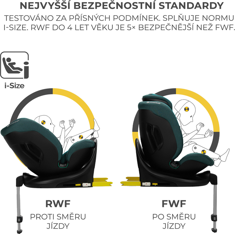 Detská autosedačka I-FIX i-Size umožňuje prepravu detí proti smeru jazdy (RWF) až do veku 4 rokov. Táto poloha je 5-krát bezpečnejšia ako poloha FWF pri čelných nárazoch.
