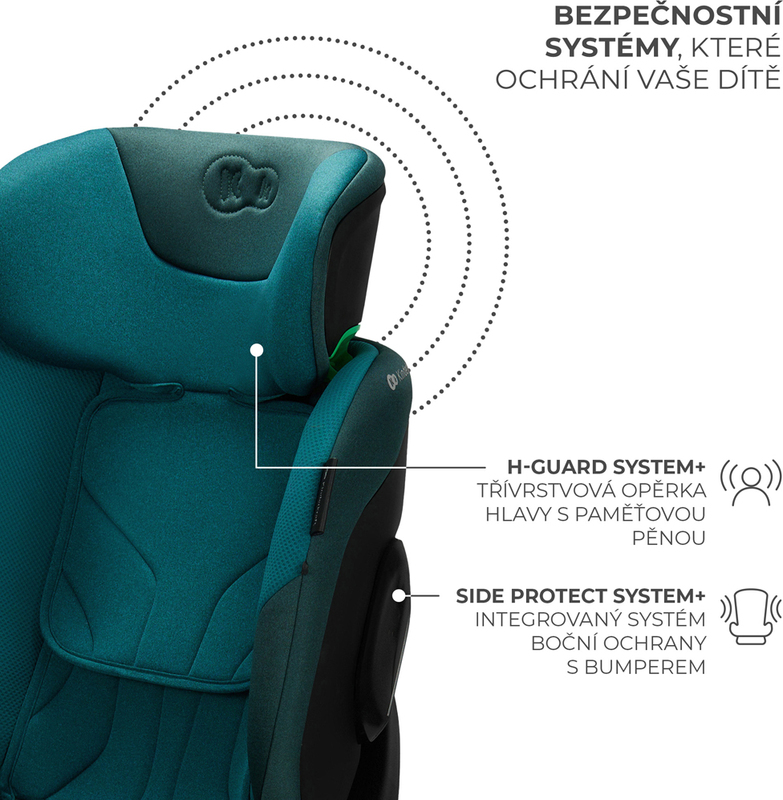Autosedačka je vybavená 2 systémami, ktoré zabezpečujú najvyššiu úroveň bezpečnosti pri cestovaní. H-GUARD+ je zosilnená 3-vrstvová opierka hlavy s prídavnou penou.