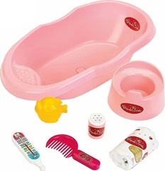 Veľká vanička pre bábiky s príslušenstvom , ktoré potrebuje maminka k starostlivosti o svoje bábätko.