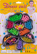 Táto sada obsahuje korálky v 2 rônych farbách. sú aj tenké šnúrky s koncovkou k prevliekaniu.
