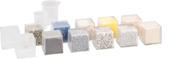 Sada obsahuje 10 kociek naplnených rôznymi materiálmi ako je perie, vlna, pemza, štrk, balzové drevo, smrek, pena, plast, hliník a železo, a tiež 9 prázdnych kociek. Ďalej 2 odmerky s objemom 50 a 100 ml. S touto sadou sa naučíte správne používanie termínov a robenie predpokladov ako je ťažšie ako... Je jednoduchšie ako... Je rovnako ťažké ako... Odhadujte a porovnávajte hmotnosť, vhodné na priamu manipuláciu s rôznymi hmotami pre rozvoj predstáv o veľkosti. Vyrobené zo 100% recyklovaného plastu a po použití ho možno opakovane recyklovať. Hlavné vlastnosti: