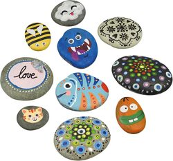 Nekonečné možnosti zdobenia: Ozdobte kamene podľa svojich predstáv pomocou priložených farieb, obtiskov a doplnkov. Každý kameň sa môže stať unikátnym umeleckým dielom.