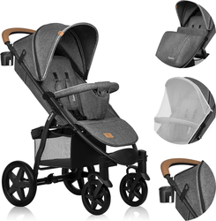 Navyše 6-stupňové nastavenie výšky opierky nôh umožňuje dieťaťu zaujať ergonomickú a stabilnú polohu. V sade je navyše moskytiéra, nánožník a držiak na hrnček, ktoré zvyšujú pohodlie na každej prechádzke.