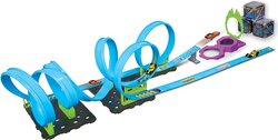 Pestrofarebná závodná dráha ponúka dva rôzne varianty trasy plné slučiek, zákrut a prekážok. Súčasťou sady s dráhou sú dve naťahovacie autíčka, obruč, ktorou autíčko preletí a prekážky v cieľovej rovinke.
