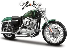 2013 XL 1200V Seventy-two. Model motocykla v mierke 1:12 majú u svojich fanúšikov veľkú obľúbenosť pre ich dokonalé prevedenie a predovšetkým veľkosť cca. 16 cm. Motocykel má otáčavé riadidlá a odpruženú zadnú nápravu. Balené v krabičke.