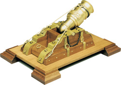 Balenie obsahuje laserom vyrezávané drevené diely, hlaveň, kovové odliatky, lana, obrázkový návod na stavbu.