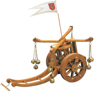 Stavebnica modelu Rímskeho bojového vozu z 15. storočia v mierke 1:12. Tento voz navrhol Leonardo da Vinci. Bol ťahaný párom koní. Rotujúce kovové gule slúžili na proraženie nepriateľskej línie. Konštrukcia sa skladá z vopred narezaných drevených dielov a kovových liatych ozdôb.
