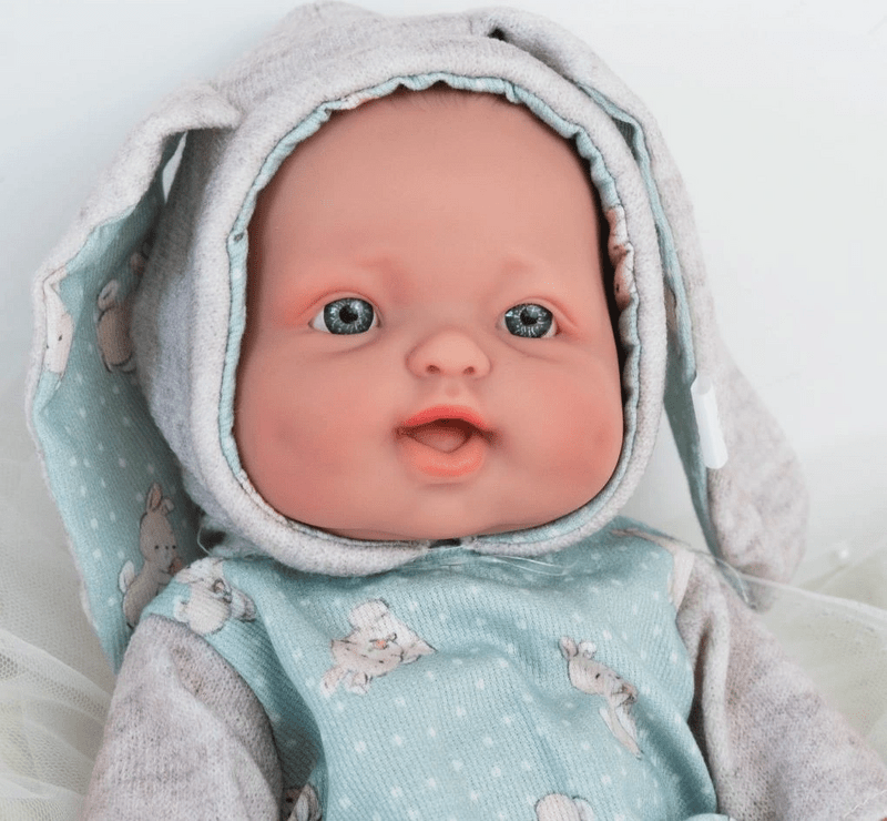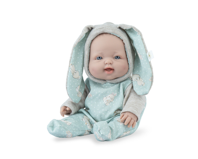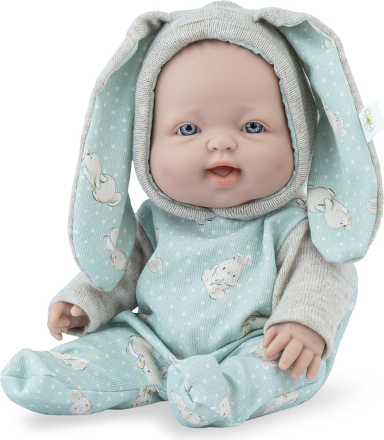 Bábätko Cuco Bunny je 28 cm bábika, úplne vyrobená v Španielsku z vysokokvalitných materiálov. Jeho telo je celé z vinylového plastu. Má na sebe zelený overal s potlačou a malými uškami. Dodáva sa v škatuľke. Odporúčané pre deti od 3 rokov..