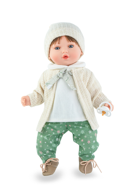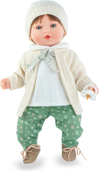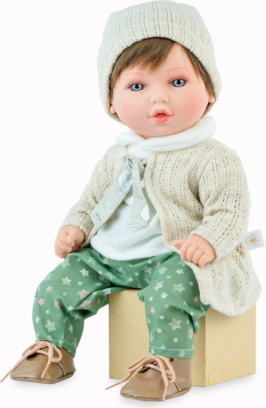 Bábika Petite Winter chlapec je 40 cm bábika, úplne vyrobená v Španielsku z vysokokvalitných materiálov. Má mäkké telo a krásne vonia. Má na sebe veselé nohavice, tričko, čiapku, svetrík a topánočky. Dodáva sa v škatuľke. Odporúčané pre deti od 3 rokov.