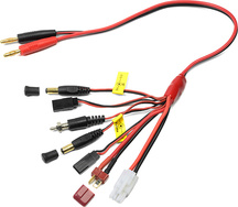 Nabíjací kábel s banánmi 4 mm a paralelne zapojenými konektormi JR-Tx/FUT-Tx/Rx/TAM/DNS.