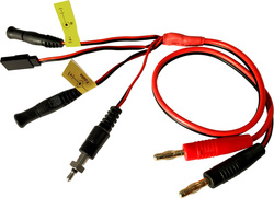 Nabíjací kábel s banánmi 4 mm a výstupnými konektormi pre koncovku žeravenia, serva a vysielača.