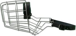Kovový náhubok s koženými remienkami na zapínanie, vhodný napríklad pre fenu dobermana.