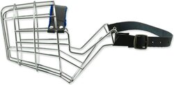 Kovový náhubok s koženými remienkami na zapínanie, vhodný napríklad fenu pitbulla.