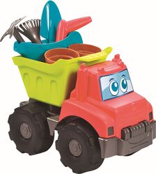 Sklápač s humornými očami na záhradu alebo na piesok.Súčasťou kanvička, dva kvetináče, lopata, hrable, rýľ a sádzacie kolík.