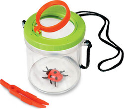 Téglik s dvojitou lupou na pozorovanie hmyzu s odnímateľným ramenným popruhom pre malých prieskumníkov od 4 rokov. Umožňuje sledovanie živého hmyzu vďaka ventilačným otvorom. Po preskúmaní hmyzu ho nezabudnite pustiť späť do prírody. Téglik deti využijú aj na pozorovanie kvetov, listov, mincí a ďalších malých predmetov.