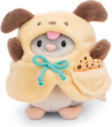 NICI plyš MyMochi Škrečok Shai 8cm v kostýme psíka a sušienkou, set darčekové balenie 8,5x