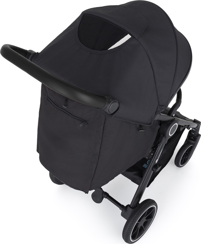 Športový kočík Street2 RWS Black je vďaka menším kolieskam ľahší, celogumené kolieska majú ale napriek tomu výborné jazdné vlastnosti. Madlo a rukoväť sú v čiernej farbe.