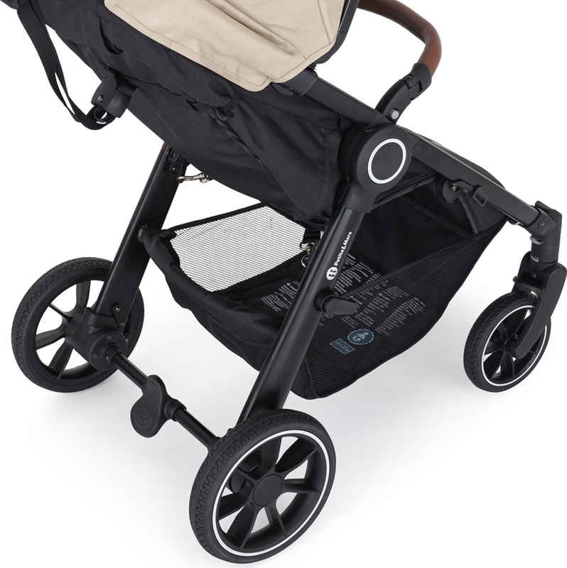 Športový kočík Street2 RWS Oak je vďaka menším kolieskam ľahší, celogumené kolieska majú ale napriek tomu výborné jazdné vlastnosti.  Madlo a rukoväť sú v krásnej hnedej farbe.