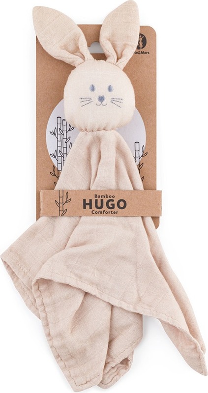 Mäkkučký mušelínový zajko Hugo má jednu tajnú záľubu. Najradšej zo všetkého sa vyvaľuje v posteli a spí. Je to skvelý kamarát a hračka na spanie pre najmenšie detičky. Hugo sa rád túli, prináša pocit tepla a nehy. S ním nikto nie je sám. Je veľmi príjemný a hebký na dotyk, dokáže dieťatko upokojiť po náročnom dni. Je to hračka bezpečná pre bábätká už od narodenia. Vďaka praktickému tvaru ho ľahko uchopia aj malé detské ručičiky. V jeho hlavičke je navyše ukrytá malá hrkálka, ktorá vydáva príjemný zvuk.
