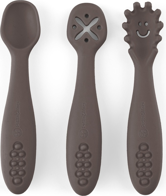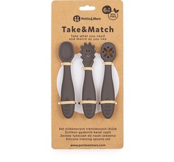 PETITE&MARS Set 3 ks silikónových tréningových lyžičiek Take&Match Bitter Cocoa 6m+