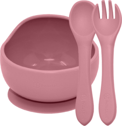 PETITE&MARS Set jedálenský silikónový TAKE&MATCH 2 ks miska + príbor Dusty Rose 6m+