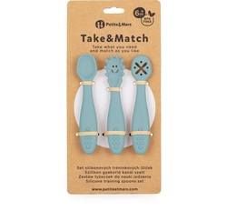 TAKE&MATCH silikónové tréningové lyžičky sada 3 ksTréningový set pozostávajúci z troch lyžičiek umožňuje vášmu dieťatku objaviť radosť z jedla. Každá lyžička je starostlivo navrhnutá tak, aby sa papanie stalo zážitkom. Set obsahuje polievkovú lyžičku, lyžičku s výstupkami na ľahké uchopenie cestovín a lyžičku na namáčanie, ktorá je ideálna na jogurty alebo peny. Niektoré lyžičky v sete majú jemné otvory, ktoré umožňujú kontrolované podávanie jedla. Vďaka tomu sa dieťatko môže naučiť jesť samostatne, skúmať rôzne tvary a textúry, čo stimuluje jeho zmysly a rozvíja zmyslové schopnosti. Rodič si môže byť istý, že jeho dieťatko neprehĺta príliš veľké sústa naraz. Tento set je nielen pomôckou, ale aj zdrojom radosti, ktorá vášmu dieťatku spríjemní každodenné stravovanie.Set je vyrobený z potravinárskeho silikónu bez obsahu BPA. Vďaka tomu môže vaše dieťa s príborom jesť teplé, studené a rôzne konzistencie jedál. Vďaka pružnému silikónu sú lyžičky ideálne pre citlivé ďasná malého dieťaťa. Lyžičky sú vhodné pre deti od 6 mesiacov, ktoré sa zoznamujú s prvými príkrmami, a pre tie, ktoré sa už úspešne učia jesť samy. Zaoblené tvary a malé rozmery uľahčujú dieťatku ich uchopenie a papanie. Lyžičky možno zladiť s iným výrobkom z radu TAKE&MATCH v rovnakej alebo ladiacej farbe