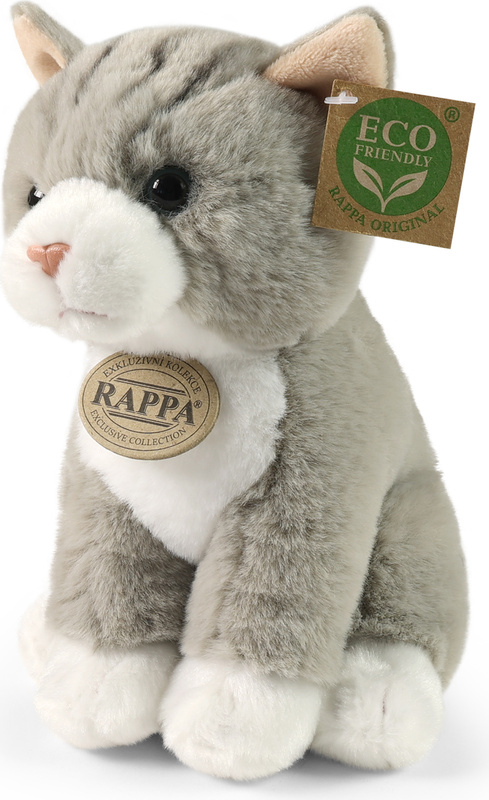 SOFT COLLECTION je nová kolekcia plyšových hračiek z nového, ešte jemnejšieho materiálu. Plyšová mačka v šedej farbe meria 23 cm a vďaka tým najkvalitnejším materiálom sa radí do Exkluzívnej kolekcie plyšových hračiek značky Rappa. Vďaka ručnému spracovaniu každého kusu navyše vyzerá ako živá.Prečo označenie ECO-FRIENDLY?