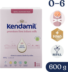 Počiatočná mliečna dojčenská výživa v prášku. Potravina je určená na osobitné výživové účely dojčiat od narodenia, pokiaľ nemôžu byť dojčené.Nová vylepšená receptúra tohoto mlieka vznikla na základe viac ako 60-ročného výskumu a vývoja. Dojčenské mlieko Kendamil je inšpirované tým najlepším z prírody. Jeho základ tvorí kvalitné plnotučné kravské mlieko s prirodzeným obsahom mliečneho tuku podľa vzoru materského mlieka. Je určené pre bábätká od narodenia do ukončeného 6. mesiaca, pokiaľ nemôžu byť dojčené. Obal je plne recyklovateľný.Benefity: