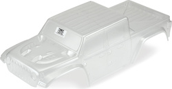 Pro-Line karoséria vyrezaná číra Jeep Gladiator Rubicon, pre RC modely áut X-MAXX v mierke 1:5, rázvor 480mm, dĺžka 685mm, šírka 274mm. Vyrobené z odolného lexanu.