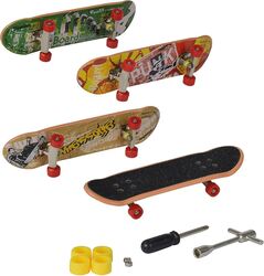 Súprava štyroch prstových skateboardov, veľkosť 9 cm. Súčasťou sú 4 náhradné kolieska a montážne náradie.