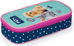 Školské puzdro etue je opatrené pevnými zipsami, vreckom na zips a klopou s pevnými pútkami po oboch stranách.