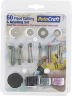 Rotacraft brúsiace stopkové nástroje - sada 60ks, môže byť použitá so všetkými mini elektrickými rotačnými frézkami. Kompaktná sada príslušenstva, ktoré pokrývajú širokú škálu činností v profi aj hobby práci. Priemer hriadeľa je 2,35mm a 3,2mm. Obsahuje brúsne, pílové, leštiace a rezacie kotúče.