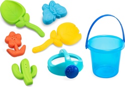 Obsah balenia - kýblik, nadstavec kanvička, lopatka, hrable, 3 formičky.