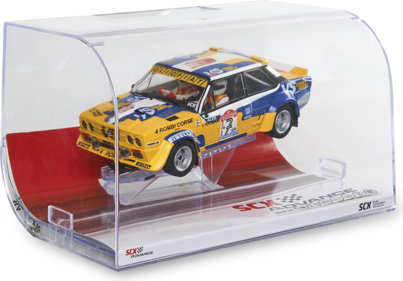 Dráhové autíčko SCX Advance Abarth 131 M. Alen v mierke 1:32, verzia 2.0, pre digitálne autodráhy SCX Advance. Autíčko je vybavené LED osvetlením. Na podvozku sa nachádza prepínač digital/analóg - autíčko je možné teda používať na digitálnej autodráhe SCX Advance aj na analógovej autodráhe SCX Original.