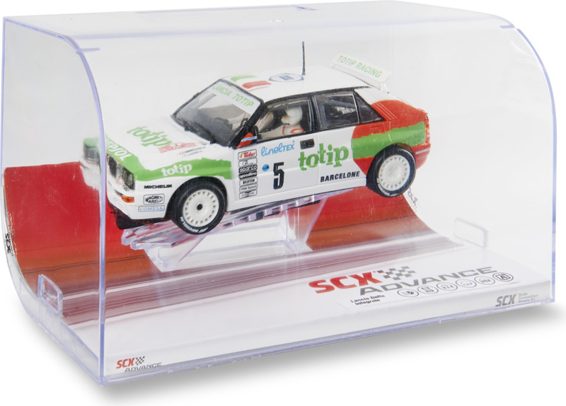 Dráhové autíčko SCX Advance Lancia Delta Integrale Totip v mierke 1:32, verzia 2.0, pre digitálne autodráhy SCX Advance. Autíčko je vybavené LED osvetlením. Na podvozku sa nachádza prepínač digital/analóg - autíčko je možné teda používať na digitálnej autodráhe SCX Advance aj na analógovej autodráhe SCX Original.