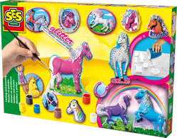 Velká reliéfní forma pro odlévání s motivy koní. Pomocí této sady můžete vyrábět přívěsky, magnety, nebo dárky pro Vaše nejbližší. Sada osahuje sádru, barvy, štětec a třpytky. Formy lze použít opakovaně. Doporučujeme však použít sádru SES. Věk: 5+