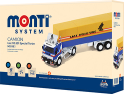 Model je v mierke 1:48. ŠTANDARDMonti System je legendárna česká stavebnica verných modelov osobných a nákladných áut, s ktorými si vyhrajú malí i veľkí. Modely sú vyrábané v mierke 1:48, 1:35 a 1:28. Monti System zostavíte bez lepidla a nanášania farieb!Najväčšou výhodou týchto stavebníc je, že na zostavenie modelu autíčka nepotrebujete žiadne lepidlo a farby. Jednotlivé dieliky sú tak dômyselne vyrobené, že s pomocou rôznych zacvakávacích zámkov, úchytov a ďalších pružných mechanizmov zostavíte model bez jedinej kvapky lepidla. Všetko do seba len zacvaknete alebo zasuniete. Výsledkom je funkčný model s úžasnými detailmi, ktorý je dokonalou replikou skutočnej predlohy. Jednotlivé dieliky sú lisované už farebné, takže nemusíte nič farbiť. Navyše sú niektoré dieliky pochrómované a pri nových Monti Systémoch majú niektoré stavebnice pre ešte realistickejší vzhľad gumové kolesá. V každom balení nájdete aj samolepky, ktorými si zložený model môžete polepiťModely z radu BASIC a STANDARD zvládnu zostaviť deti od 6 rokov. Monti System s označením PROFI je stavebnica s väčším počtom dielikov a jeho zostavenie zaberie viac času. Tieto modely sú určené pre deti od 8 rokov. Monti System je ocenená, poctivá a kvalitná česká stavebnica, ktorú urobíte radosť nielen svojim deťom, ale určite aj dospelým. Z ponuky si bez pochyby vyberie každý fanúšik autíčok. Ponúkame široký sortiment, z ktorého si môžete postaviť závodný alebo vojenský špeciál, autobus, ambulanciu, hasičov, políciu, prepravné kamióny, ťahače, cisterny, nákladné autá a ďalšie úžasné modely prepracované do posledného detailu.