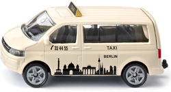 Volkswagen T5 je známy svojou priestrannosťou, pohodlným interiérom a robustnou konštrukciou, vďaka čomu je ideálnou voľbou na prepravu cestujúcich i batožiny. Model SIKU VOLKSWAGEN T5 TAXI je vyrobený z kvalitného kovu s plastovými detailmi, ktoré verne zachytávajú charakteristický vzhľad skutočného vozidla. Typický béžový lak s nápisom „TAXI“ na streche dáva modelu autentický vzhľad mestského taxíka.