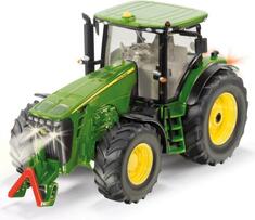 Kvalitní kovový traktor John Deere 8345R s dálkovým ovladačem. Nové a vylepšené ovládání usnadňuje přesné řízení a manévování. S tímto modelem lze použít spoustu doplňků s řady SIKU Farmer 1:32. Traktor má 2 motory.
