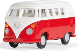 Ako model siku je kultový minibus VW T1 samozrejme k dispozícii v nezameniteľnej bielo/červenej farebnej kombinácii s vernými originálnymi kolesami. Karoséria a dvere sú kovové, nadstavba plastová.